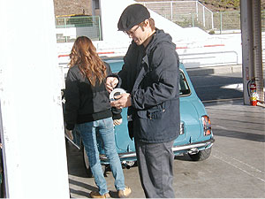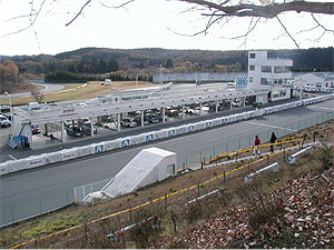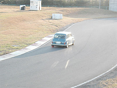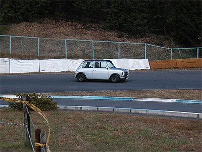 | お腹一杯食べ、残りは午後の3時間。 ぼちぼちタイムを縮めたく、皆、アクセルを踏む右足に力が入ります。 路面温度が低い?せいか、タイムが縮むどころか午前中のタイムも出ない。 私とSさんはため息。 塚越は抜けてしまう2速を片手でホールドしながらの走り。 塩原は「もう、アクセル踏んできゃイイんだろ」と、気が付くとコースインしていました。 |
