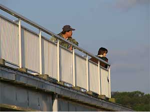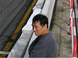 | 「息子よ、父のタイムを越えるなよ・・。」と(?)、息子の走りを見つめます。 | その頃、野口はビデオ撮影中。 |