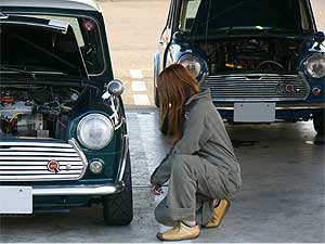 | 慣らし中とはいえ、只者では無い音のチューニングカー。 オーラが違います。 | ホイールナットのチェックも自分で。 「私って出来る女?」 |