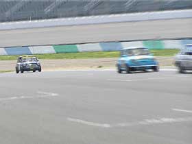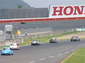 コースへと復帰した塩原は、順調に周回を重ねて行きます。 心配していた白煙も出ず一安心。 しかし、スタートから45分では体制も整わず、クリアラップは思っているように取れません。 自分のペースを維持するのが難しい中、順調に3分前後のタイムで周回を重ねて生きます。 写真では、最終コーナーを立ち上がり、ストレートへ向けて加速していく塩原。 さぁ、手前のマシンを捕らえられるか? |