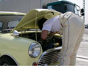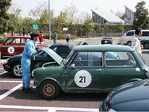 | スタートはゼッケン順に行うのですが、これは古い年式順となっています。 ゼッケン1番の車は、MGのJ2ミジェット。 何と1933年製造、今から71年前の車です。 ゼッケン順という事で、まずは塩原・野口組、続いて塩原・中島組、津久井・塚越組、最後が岡嶋・奥野組です。 |