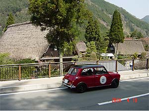| 岡嶋・奥野組がCPに到着 | 第1CPは合掌村でした(ここはOBしてます) |