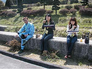 | 各自1時間程走り、第1CPに到着。 ここでは10分休憩し、再スタートです。 津久井・塚越組にとっては始めてのCP。 CPにいたタイム計測のお姉さんに「水色のVANは、何分前に来ました?」と聞くと「30分前です」との事。 いったいどれだけ飛ばしてるんだ? |