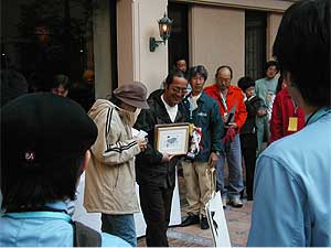 | さて表彰式は進み、順位の発表、そして商品の授与が行われています。 前日4位スタートの入内島/奥野組は一番期待出来るポジションにいるわけですが、第1ステージでのミスコースがどの様に響いてくるのでしょうか? さぁ、結果発表といきましょう。 |