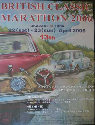 | 2006年で第13回となったクラシック・マラソンに今年も参加してきました。 クラシック・マラソンとは、1975年までに生産されたイギリス車のみで、延べ2日間をタイムラリーにて競い合うイベント。 愛知県岡崎市をスタートし、2006年も飛騨高山を往復、約600kmを走行するイベントです。 2006年は、果たしてどの様なドラマ?が展開されたのか? 楽しくご覧下さい。 |