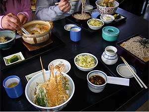 | 軽井沢、小諸と順調に走り抜け、もう恒例となった東部町のお蕎麦屋さん「元禄」にて昼食です。 ここはお勧め、何を食べても美味しいですヨ。 |