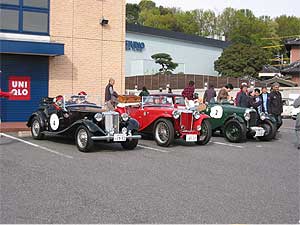 | 続々と集まってくる参加車輌たち。 いかにもクラシックカーという車輌からカワイイ車輌、悪そうな車輌、そして極めつけは、本物のレーシングカー(もちろん、ナンバーは付いてます)まで、様々なイギリス車が大集合。 参加台数69台。 ゼッケン1から年式順になっており、今年のゼッケン1は何と1935年式。 71年も前の車輌です。ゼッケン69が1975年式ですから、最新で31年経っていますけどね。 こういった車輌たちと、今年も2日間競い合っていきます。 |