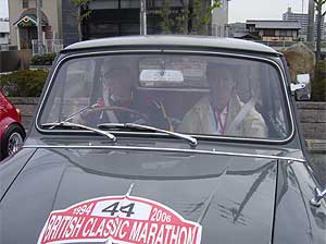 | 西薗/小林組に続くのは荒井/塚越組。 1969年式MK−2クーパーSですが、ゼッケンは59番。 塩原/塩原組のスタートからは30分以上経過しています。 それにしてもドライバー荒井の嬉しそうな事。 地元を離れ色々な事?から開放されているのでしょう。 しかし、後半チームは写真が少ない。 まぁ、みんな行ってしまうので、スタートの写真を撮って貰えないという事もあるのですが・・。 |