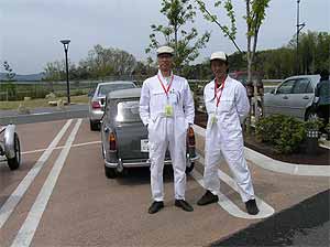 | まずゼッケン1の車輌から・・なのですが、1番の方は到着が遅れ、まだゼッケンが付いていません。 一旦スタートし、外でゼッケンを貼っていました。 この車輌、LAGONDA RAPIERというのですが、製造はなんと1935年。 今から71年前の車輌です。 1935年というと昭和10年! こういった車輌が現役バリバリで走っている所がクラシック・マラソンの楽しい所。 |