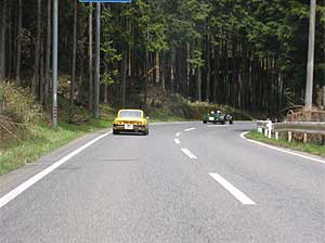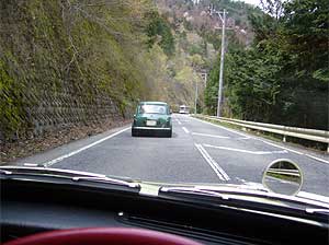 | 途中、津久井がトイレを我慢出来ずに道の駅へ。 そこに塩原/塩原組も休憩で入ってきて合流。 ここから暫く一緒に行く事に。 昨年、一昨年と、塩原とは一緒に走る機会が少なかったのですが、2006年は楽しく走る事が出来ていてちょっぴり嬉しかった。 普段、ツーリングだなんだで一緒に走っているのですが、イベント、しかも遠くへ来て一緒に走ると新鮮な気持ちですね。 塩原のクーパーSが普段よりカッコ良く見えました。 各組とも無事スタートし、本当の意味で始まったクラシック・マラソン。 盛り上がってきた所でPART4へ。 |