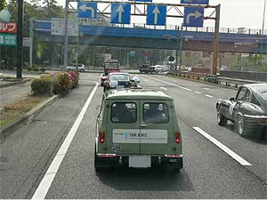 | いよいよスタートしたブリクラですが、出だしのここが一番大変。 何が大変かって、スタートゲートで渡された地図(渡されるまでルートは一切解りません)を見てkmで書かれている距離をマイル(津久井号はマイルメーターのため)に変換しメーターと睨めっこしながら渡されたペーパーテストやその後の予定の確認などなど、忙しいんです。 助手席でピースサイン出してますが、本当はあまり余裕がありません・・。 |