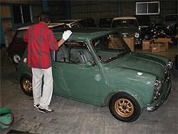 | まずは、前日の準備から。 今回参加車輌は2台。 「AUSTIN COOPER 1071S」(緑S)と「MORRIS COOPER 1071S」(赤S) 車輌整備も完了し、ワックスを掛け磨き上げます。 天気予報では2日間とも雨が降りそう。 晴れてくれれば良いのですが・・・。 |