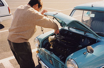 | よ〜く見ると雪が舞ってます。 | SAでは水とオイルのチェック。 |