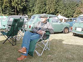 | 当日の参加車輌たち。 MK−IからMK−II/III、カントリーマンにピックアップ、バン、マーコスと様々なオールド・ミニが集まっています。 午後も、ミニを見て周り、ゆっくりと過ごします。 |