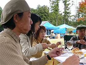 | この日のメニュー。 すこし量が少ないのが残念。 | 外で食べるランチもイイものです。 |