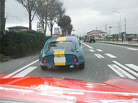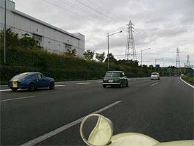 | 関越を降り都内を抜け、東名高速で御殿場ICを目指します。 東名高速で写真を撮っていると、気が付けばマーコスがチョロチョロと。 マーコスに乗るIさんが「常に俺を撮れ!」というよな位置に着けてきます。 この後、Iさんと塩原がダッシュ。 津久井もそれに続きます。 残り3台が後ろで1グループ成型する事に。 |