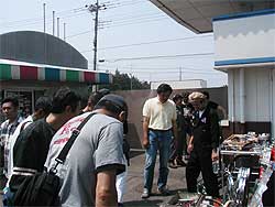 | 当日の朝は、伊勢崎市内のショッピングセンター6:00集合。 ここから各班に別れミニディの行われる茨城県の筑波サーキットまでツーリングです。 2005年は、1月3日以来4ヶ月弱ぶりのツーリングです。 挨拶を済ませ、筑波を目指し出発です。 |