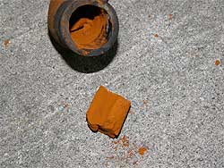 確認の為に、ほじくり出してみました。 完全に固まっていて、これだけ出してもまだ奥には固まりがいます。 ここまで詰まってしまうと、水を流して洗浄するだけでは取れません。 |