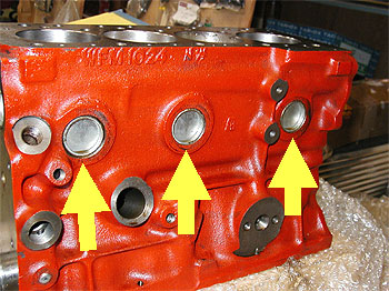 コア・プラグという物をご存知ですか? ミニに限らず、エンジンに開いている穴を埋める為の蓋です。 ミニのエンジンは5箇所にプラグがついています。 下の2枚の写真、左がエンジンの左側の写真、 右はエンジンの正面の写真です。 黄色い矢印の先にある丸い部分がコア・プラグです。 今回は、このプラグに関する事件です。 |