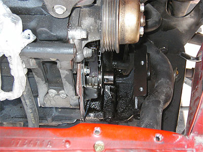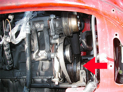 発電機とウォーターポンプを回しているベルトがずれて、外れている。