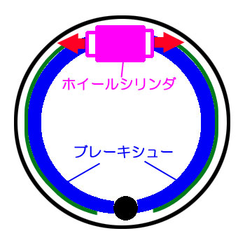 内容の説明の前に、簡単にドラムブレーキの仕組みを説明します。