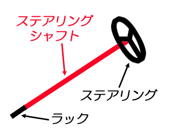 ステアリングを回すとこのシャフトが回転し、ラックに力を伝えます。