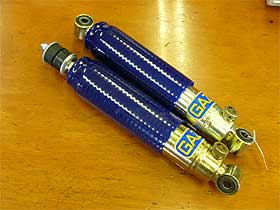 | まず、比較対照として、下記のショックも2種類計測してみる事とします。 下左の写真はGAZショックアブソーバー。 ここ数年では、価格の安さ、そして製品の造りの良さ、調整幅も広く町乗りからサーキットまで幅広くこなせるショックとして人気のあるものです。 右下の写真は、同じGAZなのですが本体がアルミケースで出来ているもの。 上のプロテックと同じアルミケースなので、重量にどれくらい違いがあるのか興味のある所です。 |