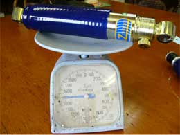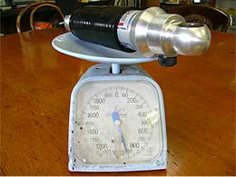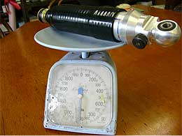 最後にプロテックを計測し、出た数字に唖然。 秤が汚れており数字が読みにくいと思うのですが、何と1kgありません。 1本/0.97kgという軽さです。 これはGAZと比較しておよそ6割程度の重さしかありません。 |