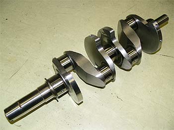 | 軽量化・フルバランス取りを行ったクランクシャフトです。 クランクシャフトはエンジンの中心部であり、要と言える部品でもあります。 エンジン回転数は、このクランクシャフトが1分間に何回転回るか?という事になりますので、6000rpmとなれば1分間に6000回転(1秒間に100回転)回っていると言う事。 通常、ノーマルのクランクシャフトは14kgほどありますが、それだけ重い物を高回転で回すのは大変な事。 そこで軽量化し、高回転時の負荷を少なくしています。 また、ただ単に軽くすれば良いという物でもなく、軽すぎると慣性力も減り、結果としてトルクが少なくなってしまいます。 このクランクは2kg程軽量化し、回転ムラを抑えるためにバランス取りが行われています。 実際に組み込んでは、まだ慣らし終了直後という事もあり全開では回していないのですが、回転はスムーズ。 とてもキレイに回っているという感じです。 本領を発揮するのは高回転時ですから、まだまだこれからでしょう。 デメリットとして高価になってしまうという事、加工に時間がかかるという事がありますが、高回転でのレスポンスを楽しみたい方には有効なパーツです。 |