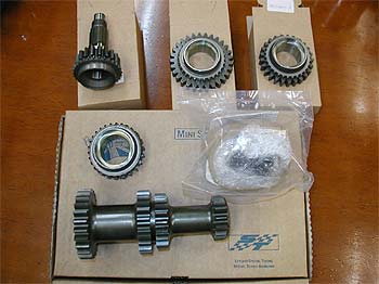 | クロスミッションの中で、よく使われる物がミニスペアーズ製の物。 ストレートカットの名前の通り、ギアの歯は真っ直ぐに当たる様に切られており、エンジンからの駆動をロスする事なく伝える事が出来る。 また、クロスレシオ(各ギアの比率が近くなる)になる事で、2速3速の繋がりも良く、2速から3速へのシフトアップで回転落ちも少ないので、パワーバンドを有効に使え、鋭い加速を行う事が可能。 しかし、デメリットもあり、ストレートカットの為に各ギアの当たりが強く、ギアの唸り音が出てしまう。 特にアクセルを抜いた状態の音は、知らない人が聞けば壊れている?と思うような音となる。 逆に加速時は「キーン」といった音がカッコ良かったりするのですが・・。 一番大きなデメリットとしては、高速走行が辛くなるという事。 クロスミッションだけで考えると4速のギア比はノーマルと一緒ですが、クロスミッションを有効に使うにはファイナルギアを3.6以上にしないと意味がありません。 3.64のファイナルギアで高速走行を行うと100km/hで走るには4000rpm回す必要があります。 さすがに長時間の高速走行はツライです。 しかし、そのデメリットを補う程の強烈な加速感は最高です。 クロスミッションは、ミッションだけでは本来の力を発揮出来ません。 ファイナルギアの選択や、エンジンチューニングとのバランスが重要となってきます。 |