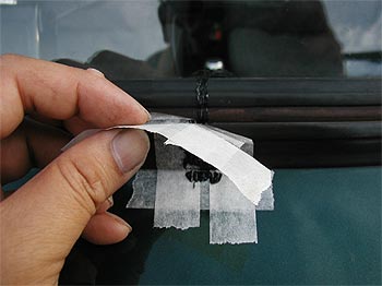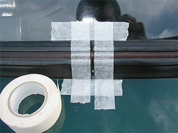 @まず、シール材がはみ出てもいいように、マスキングテープ等を貼り付けます。(左上)