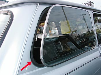 クォーターウインドウの場合は、ウェザーストリップが縮んで隙間が出来てしまうので、