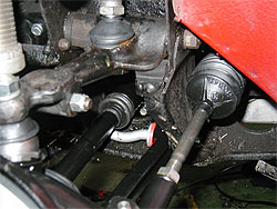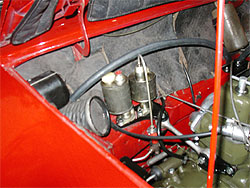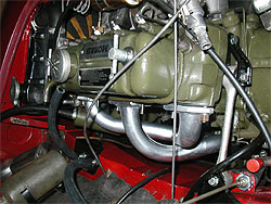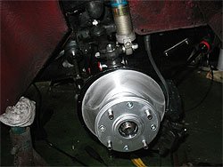 | 作業中の1コマ。 エンジン関係ではクラッチ、ブレーキ系の点検整備、LCB交換、エンジンマウント交換、キャブ調整、ブレーキサーボ取り付け等を行っています。 右写真のLCBはシルバーに塗装して取り付けたもの。 まだキャブ関係は付いていません。 |