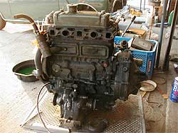 | エンジンを降ろした瞬間 | 本体はグリーンで再塗装します。 |