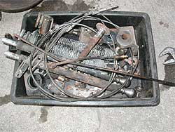 | 最後にボディからサブフレームや細々したパーツを外します。 もちろん、フレームからも足回りのパーツやハイドロディスプレッサー等も外し、仕上げていきます。 外したパーツの一部を下で紹介します。 |