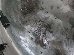 アップで見ると錆びの深さが解ります この時点で穴も開いてしまいました |