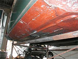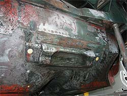 | ボディ下側では、サイドシル、フロア底面もフェンダー内部と同様にアンダーコートを剥がします。 こちらも、腐食している部分は無く、良い状態でした。 |