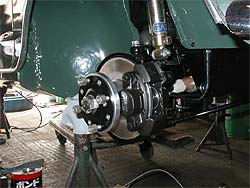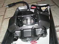 | PART5で紹介したキャリパー。 オーバーホール、仕上げが完了。 今回、キャリパーはガンメタで塗装。 | ローター、キャリパーの組み付けが完了しました。 |