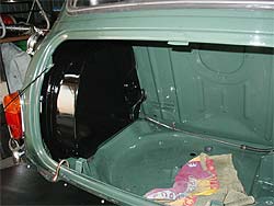 | フロントと同時に他の作業も進めていきます。 まず、トランク内では燃料タンクを搭載。 そしてリアブレーキも組み上げていきます。 |