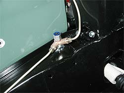 | エンジンルーム内では、細かい配管を引きなおしていきます。 まずはブレーキ関係の配管から。 |