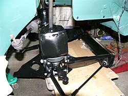 | PART3で紹介したラジアスアーム。 塗装まで完了。 | ラジアスアームを組み付け、ヘルパースプリングを取り付け。 ハイドロ車にはショックはありません。 | |