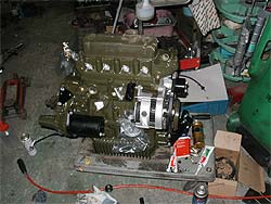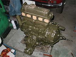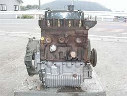 | 手を付ける前のエンジンです。 エンジン本体は、本来グリーンに塗装されていますが、塗装は剥げ全体に錆が出ています。 |