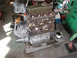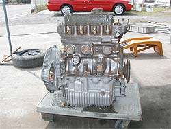 | 今回紹介するのは、降ろしているエンジン側の作業です。 エンジンに関しては、予算の都合と、本体には大きな不具合は出ていない為、今回オーバーホールは行いません。 しかし、ポイントを押さえた整備は行います。 |