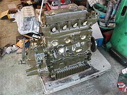 | さぁ、塗装が終わりました。 エンジン本体はもちろん、ミッションケースやクラッチハウジングも本来はエンジンと同色に塗られている為、今回は塗装しています。 |