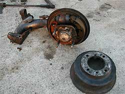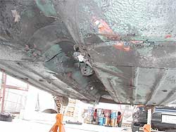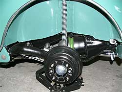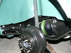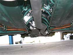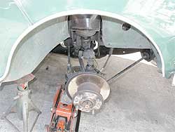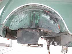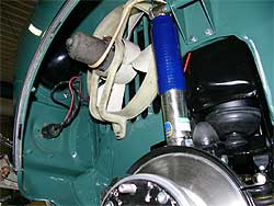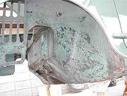 | 次は、フロントのサスペンション及びフェンダー部分。 下の写真の上2枚が作業前です。 まるで違う車のようです。 |
