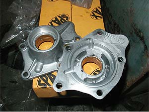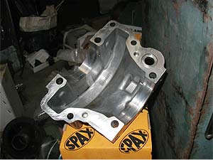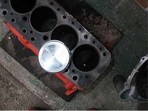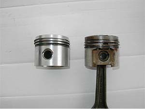 | 実は、ここに今回のチューニング・メニューの目玉?が隠されています。 オーナーであるYさんの要望は、「楽に早く走れる」という事。 そこで、今回はオーバーサイズのピストンを入れ低回転からのトルクを稼ぎ下から楽に走れる仕様とする事になりました。 写真は、+20オーバーサイズのピストンです。 外したピストンと比べて一回り大きいのですが、見ただけでは解りませんね。 このピストンに合わせ、内燃機屋さんで加工を行います。 |