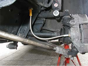 | ここでもう一つ、追加の作業を行います。 Yさんの要望で、ブレーキホースをステンメッシュの物に変更します。 写真はフロント&リアです。 |