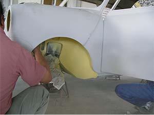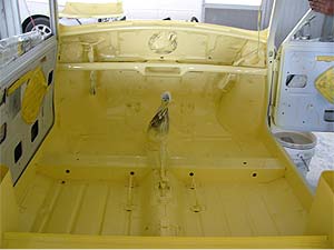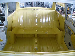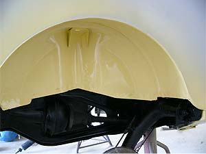 | 室内に続いて色を入れるのはフェンダー内。 ここも、フェンダー内の上部等、普段は見えない部分も丁寧に塗装していきます。 フロント、リア共に4箇所のフェンダー内の塗装が完了しました。 |