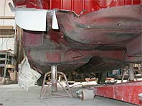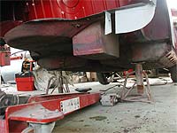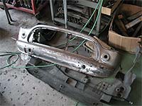 | 作業は進み、リアのフレームは落とされました。 この状態でリアスカートの取り付け等を行っていきます。 |