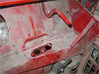 | 細かい部分を見てみましょう。 まずバルクヘッドの部分。 ここはどうしてもフルードやガソリンによって塗装がやられている車がほとんど。 もちろんビッチリ仕上げます。 また、左右インナーパネルもそれほど酷い状態ではありません。 |